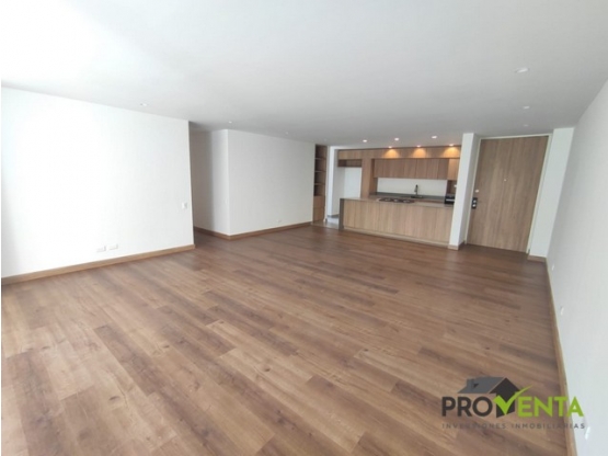 El área privada incluye tres alcobas, cada una con vestier y baño privado. Además, un estudio, baño social y pisos en madera laminada. Dispone de dos parqueaderos paralelos y un cuarto útil.