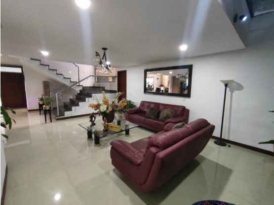 La casa de dos niveles ofrece espacios amplios y luminosos, con sala comedor independiente y una cocina integral abierta con barra. Cuenta con un hermoso jardín con terraza, ideal para relajarte o compartir con familiares y amigos.Cuatro alcobas con vestier y baño privado, incluyendo una alcoba principal de ensueño con jacuzzi y balcón con vista al jardín. Además, dispone de sala de TV, estudio, cuarto de servicio y tres parqueaderos.