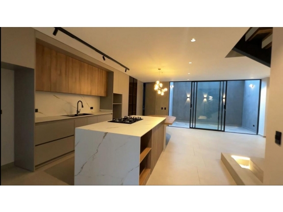 Excelente distribución e iluminada, tres niveles, espacios amplios, sala comedor, cocina integral abierta con cubierta, mesones en piedra sinterizada, mesa de comedor en roble, patio de ropa con pergola motorizada, un patio descubierto, jardin interno, un baño social, dos habitaciones cada una con vestier y baño privado, la habitación principal con vestier doble y  balcón, gran salón que puede adecuarse para una tercera habitación o sala de tv,  baño completo y closet, terraza con salida al jacuzzi, dos parqueaderos cubiertos independientes y cuarto útil.
